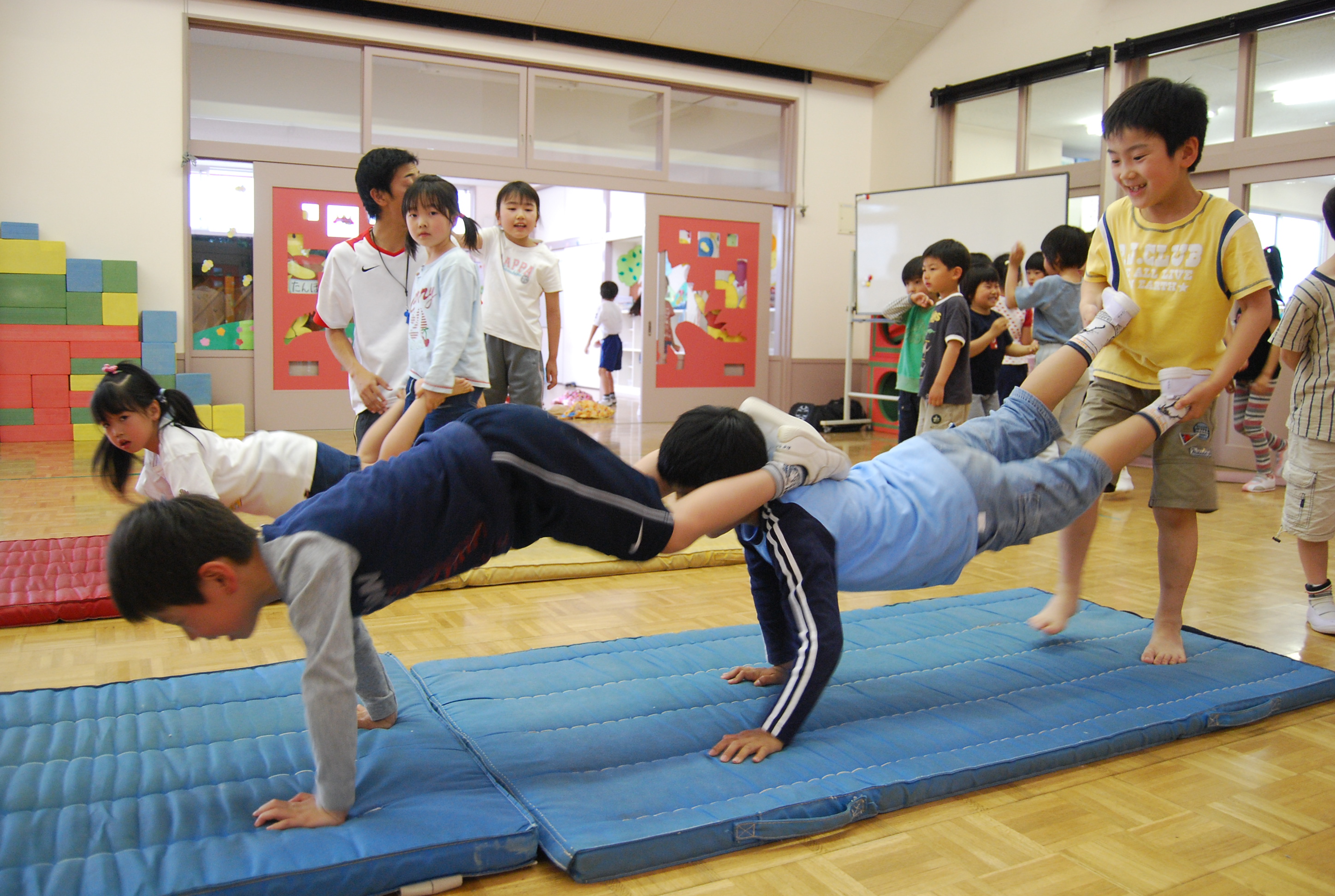 彼らにとってはただ遊んでいる感覚しかありませんが、種目のすべてが運動効果を最大限に発揮できる裏づけのもとに構成されています。