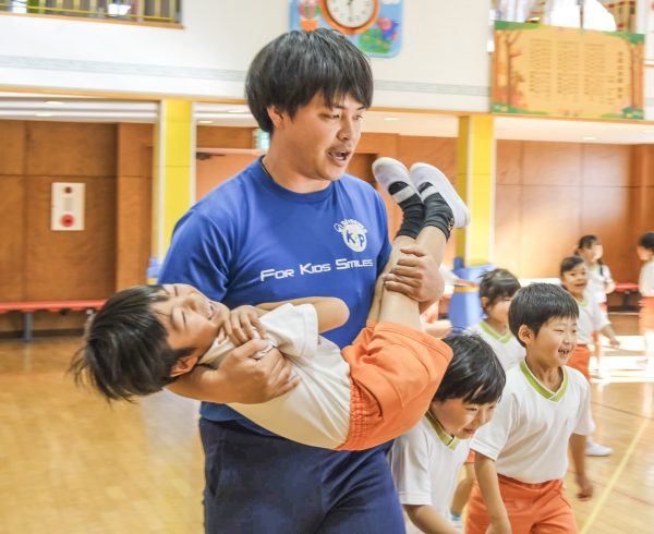 幼稚園・保育園の保育時間内に行う運動指導のことです。こころとからだの調和的な発達を促す独自のカリキュラムと指導者の表現力が特長です。