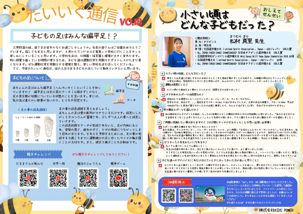 内容は、「家庭でできるトレーニング動画(YouTube)」「内面的成長」「運動がどのように生活の中に生きていくか」「逆上がり等の成就アドバイス」を記載した『たいいく通信』を保護者へ配布しています。